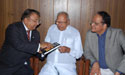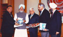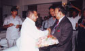 Dr. Subhash Goyal (Chairman - Stic Travels Group) presenting his book "Poverty Eradication & Economic Development through Tourism" to Shri Krishna Iyer (Former Chief Justice of India).