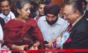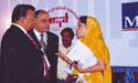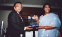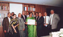 Dr. Subhash Goyal (Chairman - Stic Travels Group) presenting Cheque of Fourteen Lakhs Ninety Two Thousand Eight Hundred Eighty Four only to Mrs. Renuka Chowdhury (Union Minister of Civil Aviation) against Tsunami relief fund.