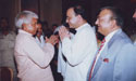 (From right to left) Dr. Subhash Goyal (Chairman - Stic Travels Group), Sh. L.K. Advani the then (Deputy Prime Minister of India).