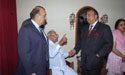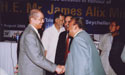 Dr. Subhash Goyal (Chairman - Stic Travels Group) shaking hands with Mr. James Alix Michel (President of Seychelles)