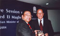 Dr. Subhash Goyal (Chairman - Stic Travels Group) presenting his book to H.E. Mr. Ahmed El Maghraby (Hon'ble Egyptian Minister of Tourism).