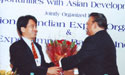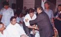 Dr. Subhash Goyal (Chairman - Stic Travels Group) Shaking hands with Mr. Shahnawaz Hussain (Former Union Minister of Civil Aviation).