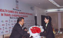 (From left to right) Dr. Subhash Goyal (Chairman - Stic Travels Group) presenting Momento to Mrs. Renuka Choudhary (Minister of Tourism).